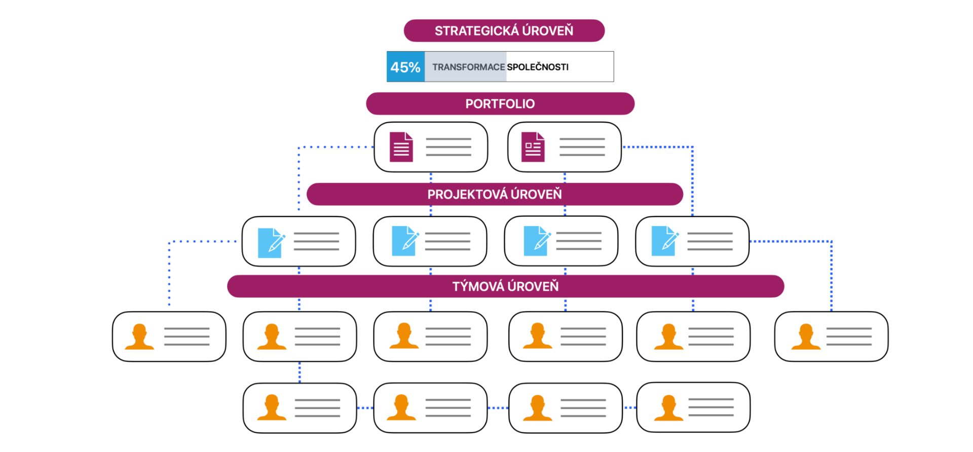 Řízení zdrojů patří mezi kritické disciplíny. Kapacity je třeba plánovat a řídit na všech úrovních od portfolio položek až po jednotlivé úkoly. Veškeré požadavky kapacit můžete zobrazit v přehledné podobě, včetně vizualizace konfliktů nebo přetížení zdrojů. Pracujte se scénáři a vytvářejte různé varianty realizace.