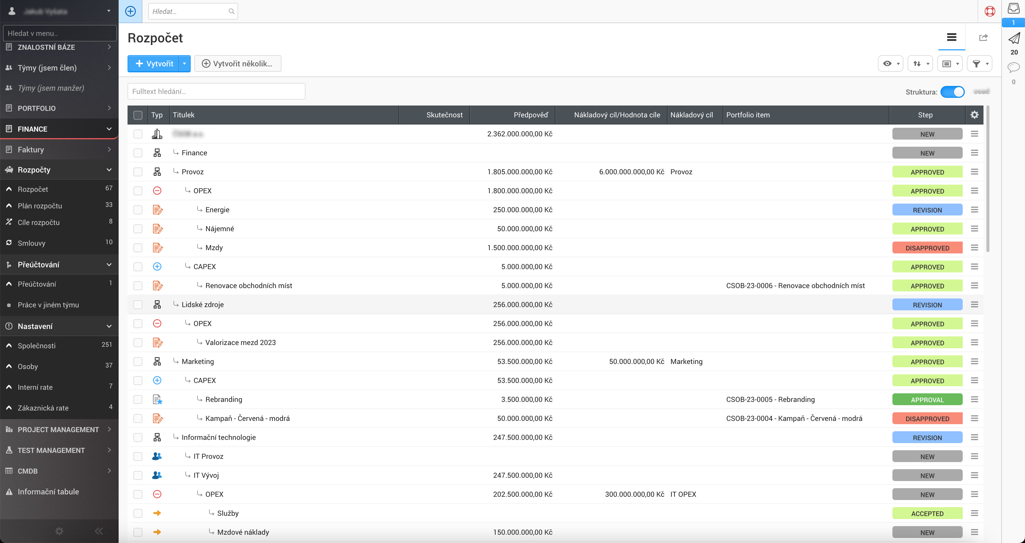 Zapomeňte na plánování rozpočtů v excelových tabulkách. Modul umožňuje spravovat rozpočty v přímé vazbě na realizaci projektů a proaktivně reagovat na jejich průběh. Mějte po ruce aktuální informace a sledujte finanční plnění i strategické cíle. Viditelnost rozpočtu a jeho částí se řídí zvolenou bezpečností politikou.